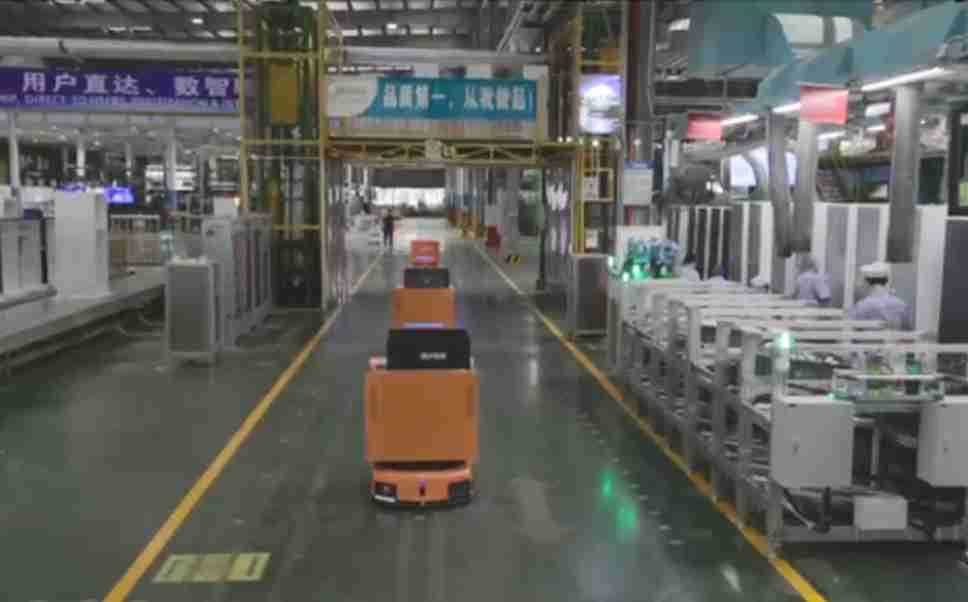 为车载冰箱物流配送打造的智能解决方案,,,包含产中物流通过潜伏举升AMR搬运至线边,,,产后成品物流智能仓储,,流程包含产中物流智能齐套入库,,,线边安灯叫料AMR智能配送至线边,,,,成品入库、、、出库,,,通过无人堆高车机器人,,智能仓储管理替代人工作业管理,,,实现更高存储、、、更高效率、、、更具柔性化的解决方案。。。。